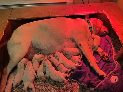 Sired by Indiana Willie (of Hillside Labradors of CT, Ellington, CT), our sunny Polly welcomed 11 wonderful, healthy yellow puppies: 7 Males - 4 Females